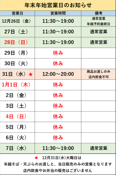 水曜日〜日曜日は変わらず11:30〜19:00迄