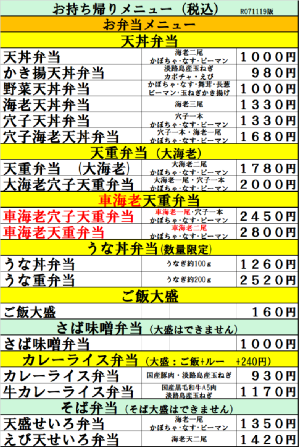 天丼等のお弁当や、天ぷらをお持ち帰り頂けます