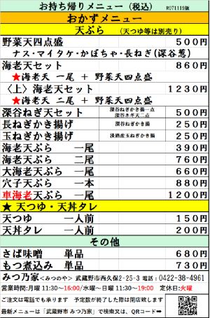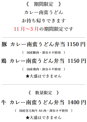 ★その他の蕎麦うどんメニューのお持ち帰りは出来ません